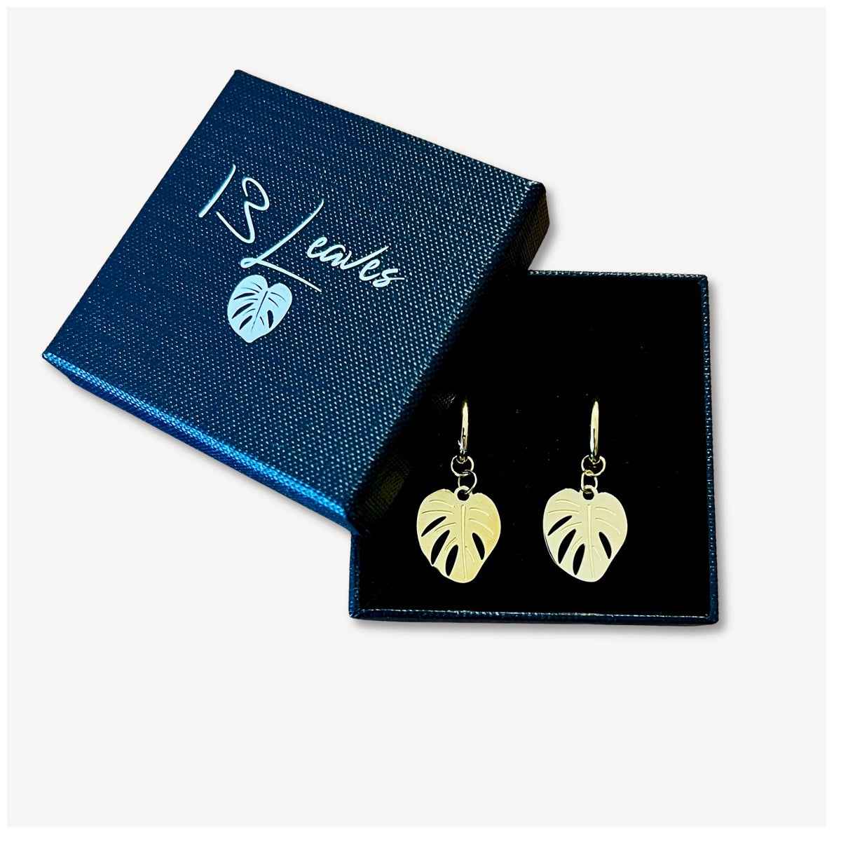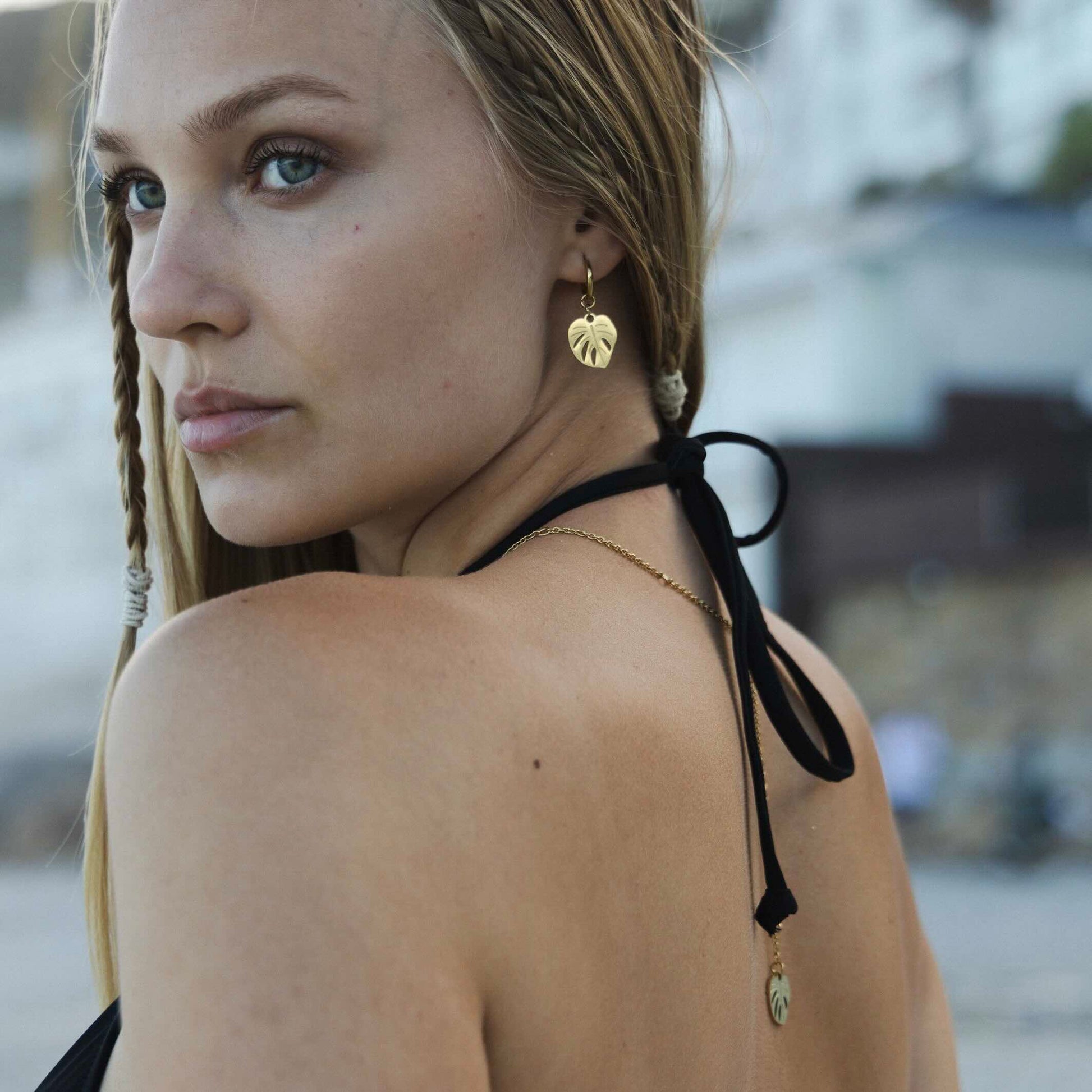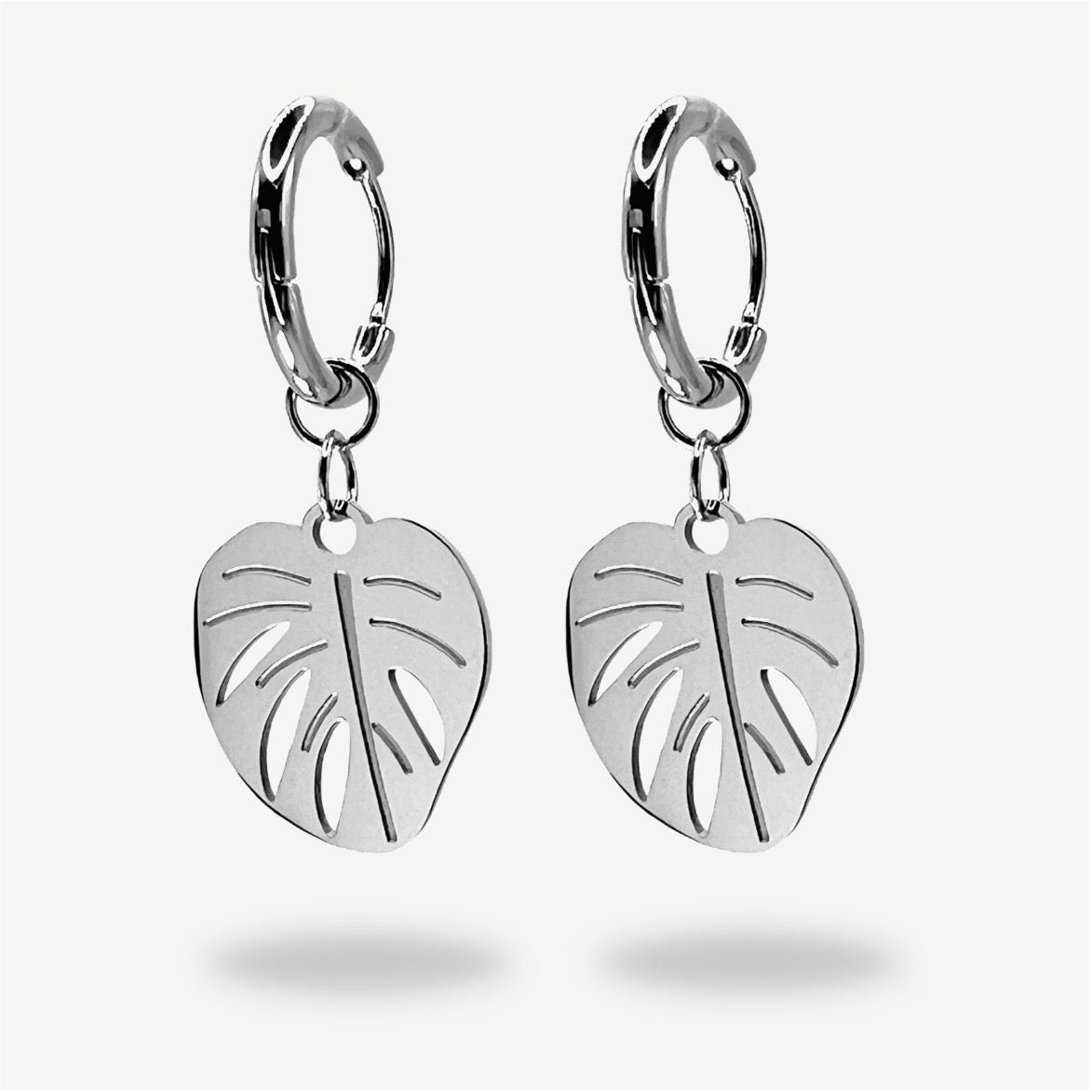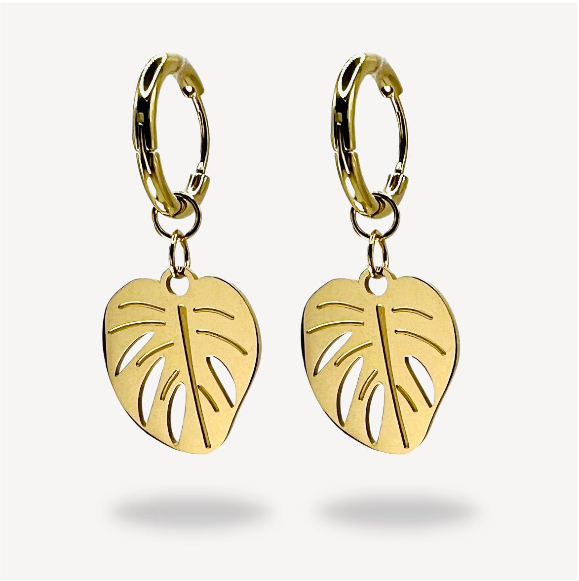 Die Leaf Hoops Ohrringe runden jeden Look perfekt ab. Die klassischen Creolen werden von unserem Markenzeichen, dem Monstera Blatt Anhänger verziert.